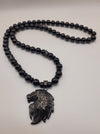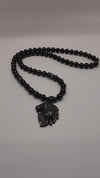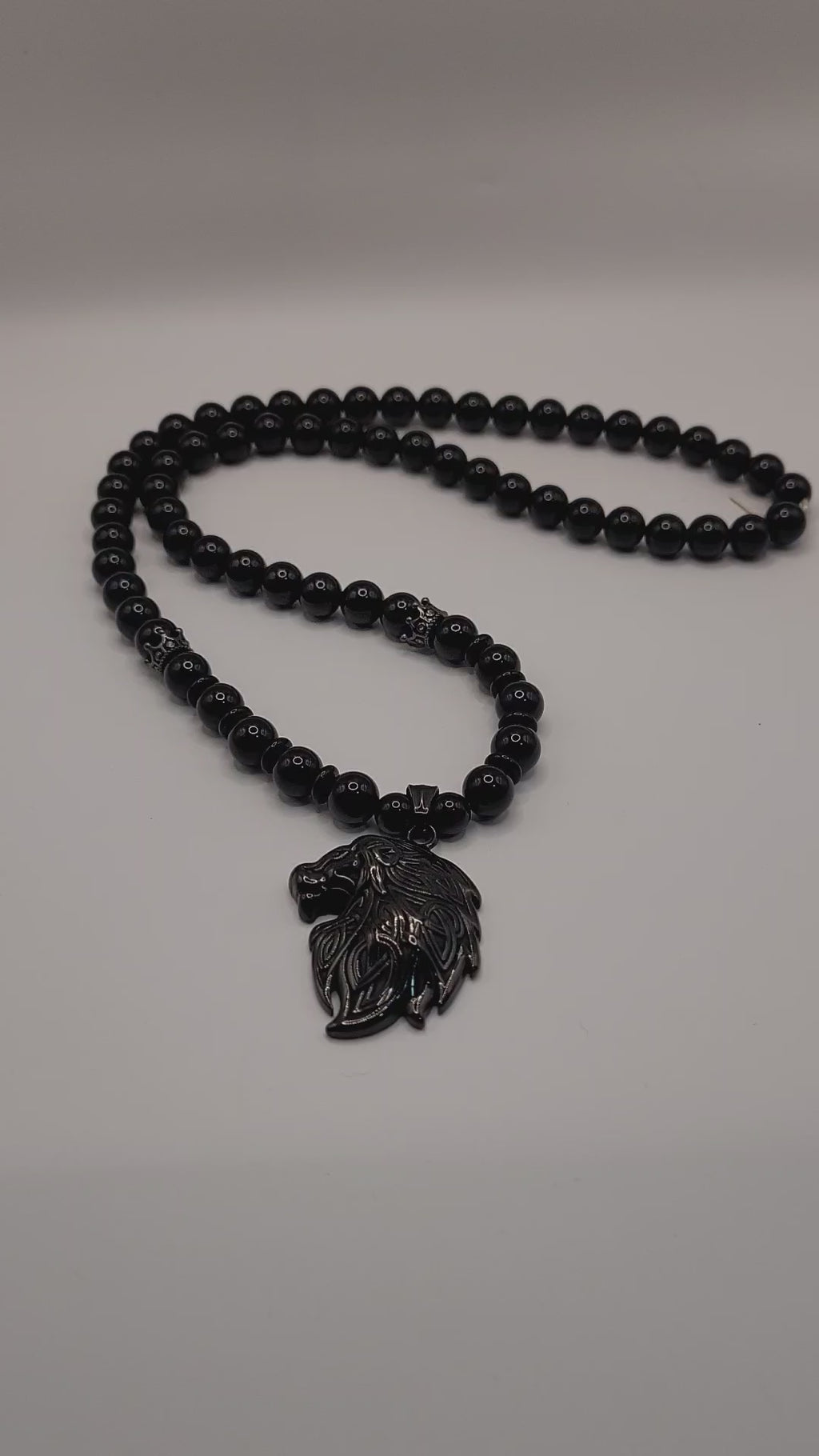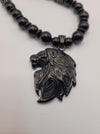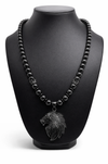 24" Black onyx Iion side profile necklace, with black crowns, and spacers